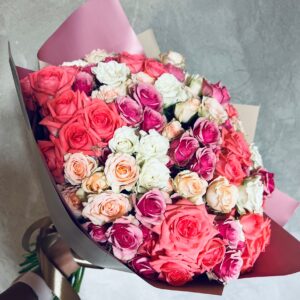 Kompozīcijas attēlam ir informatīva nozīme. Ziedu kompozīcijās un ziedu pušķos ir iespējamas nelielas izmaiņas. Var nedaudz atšķirties ziedu krāsu tonis vai ziedu sastāvs, atkarībā no ziedu sezonalitātes. Mūsu floristi izveidos visskaistāko ziedu kompozīciju, kura saglabās attēlā redzamā pušķa būtību. Par izmaiņām ziedu kompozīcijās vai ziedu pušķos ar jums sazināsies VIOLET.LV personīgi.